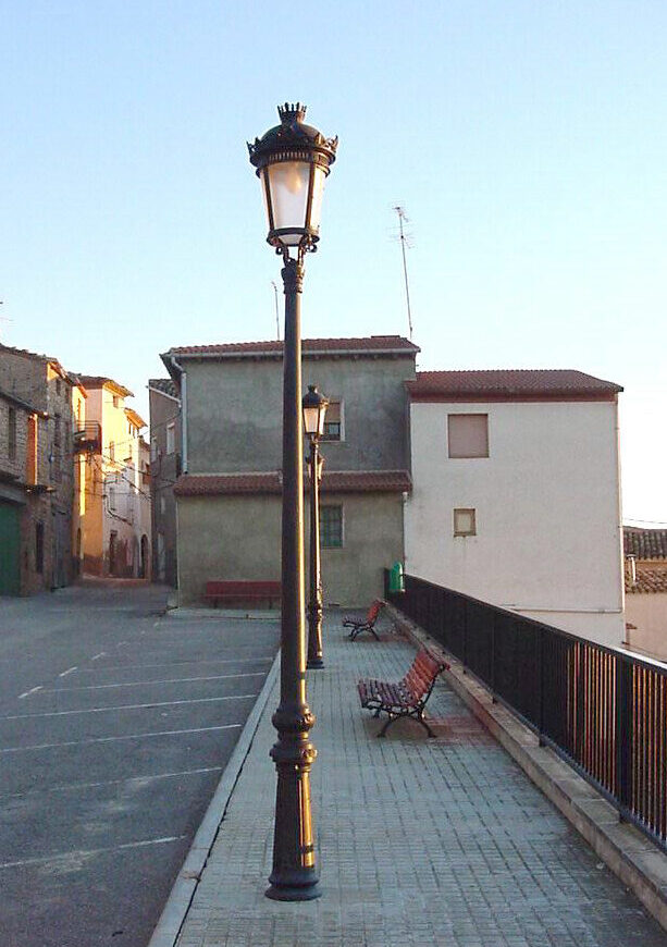 Per a la il·luminació es fan servir un conjunt d’objectes com ara bàculs, fanals, canelobres de fosa i projectors, en funció de la seva col·locació, intensitat lluminosa desitjada, entorn i altres factors. Actualment, s’estan emprant làmpades de tecnologia SAP (Làmpada de vapor de sodi d’Alta Pressió – de to ataronjat), lluminàries led, Additius Haluro Metàl·lics (de tonalitat blava, encara que per errors de composició pot variar) i MCC (Vapor de Mercuri de Color Corregit – de to verdós), si bé existeixen altres com Tungsteno–Halógena (antigament cridada Quars-Iode), fluorescència . Per la seva baixa eficàcia les làmpades de vapor de Mercuri, Llum Mixta (un cremador de mercuri amb un filament incandescent) i incandescent (normal i de Tungstè-Halògena) no són gaire utilitzades a l’enllumenat públic, amb excepció d’aplicacions especials.